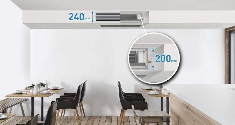 Bơm thoát nước ngưng cột áp cao được thiết kế tích hợp sẵn bên trong dàn lạnh nối ống gió có khả năng nâng lên đến 702 mm (khoảng cách tính từ chân đế của thiết bị). Điều này cho phép kỹ thuật viên có thể dễ dàng lắp đặt hoặc bố trí thiết bị tại các vị trí trần hạn chế về chiều cao hay không gian nhỏ hẹp. Từ đó đảm bảo tính thẩm mỹ, cũng như hài hòa với mọi phương án thiết kế nội thất.